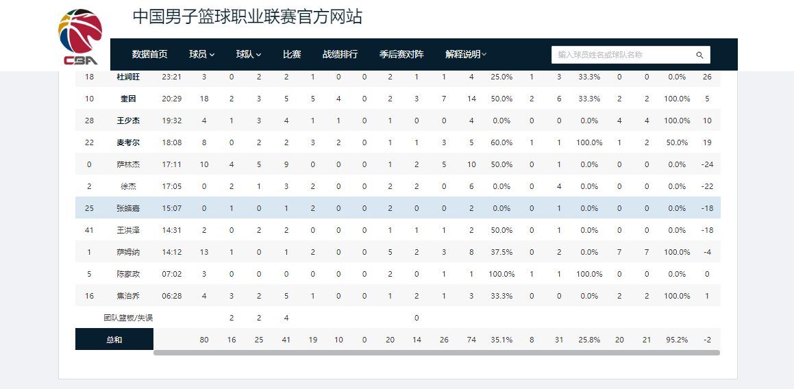 本场比赛广东男篮共完成74次出手,接近赛季场均72次,但全队投篮命中率只有35.1%,三分命中率更是低至25.8%,这两项数据远低于赛季场均45.9%的投篮命中率和32.8%的三分命中率。